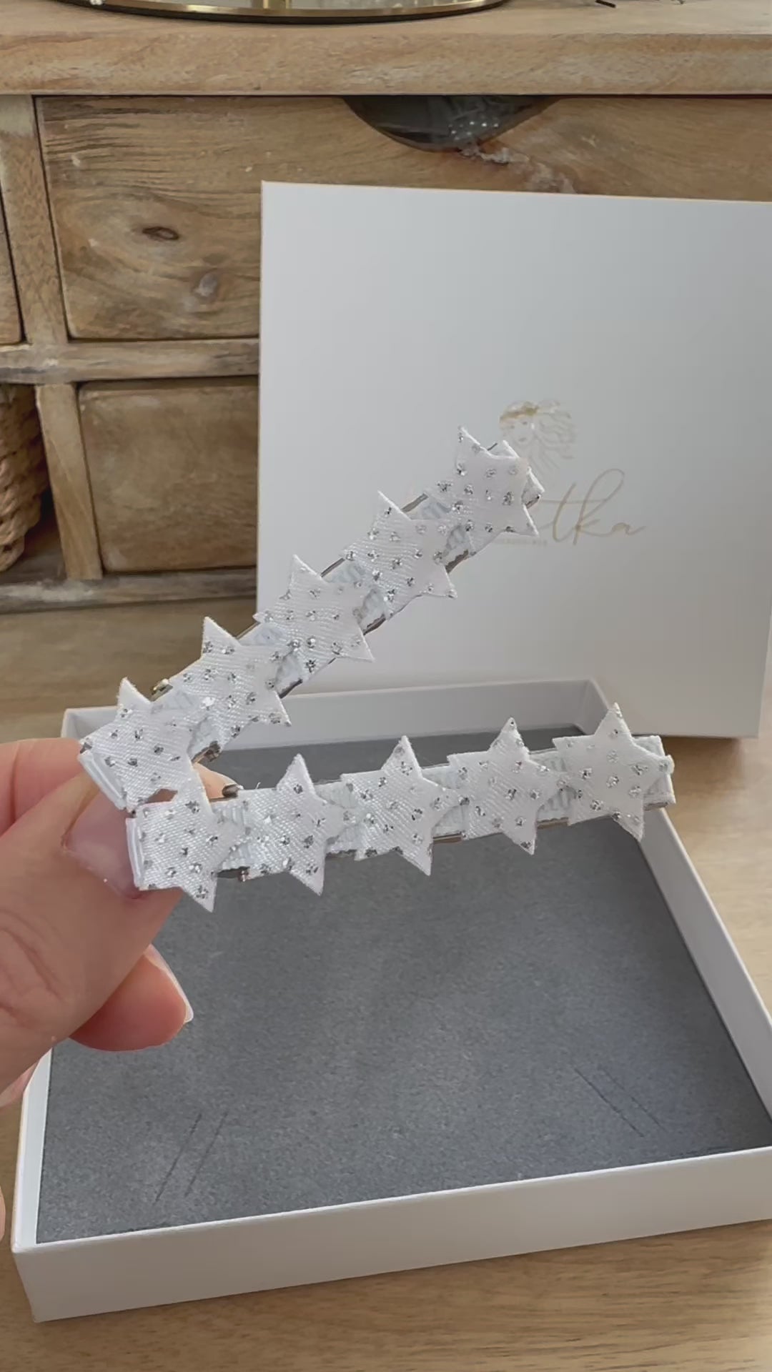 Diese liebevoll gestalteten Haarklammern mit Satin-Sternen bringen funkelnden Glanz in jede Kommunionsfrisur. Mit glänzendem Glitter verziert, strahlen sie festliche Eleganz aus und lassen sich mühelos ins Haar einarbeiten.
