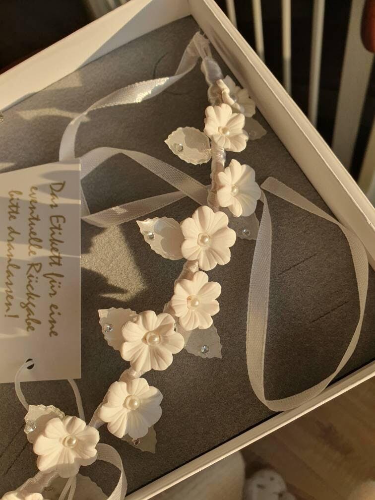 Ein wunderschönes Detail, das den Kommunionlook komplett macht und auf Erinnerungsfotos zauberhaft wirkt.