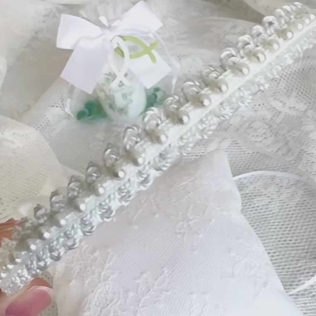 Dieser zarte Ivory Haarreif besticht durch feine Spitze und kleine, schimmernde Perlen, die ihm eine romantische Eleganz verleihen. Der Ivory Haarreif ist ideal für die Kommunion, Hochzeit oder andere festliche Anlässe. Er ist leicht, bequem zu tragen und rundet jede Frisur stilvoll und harmonisch ab.